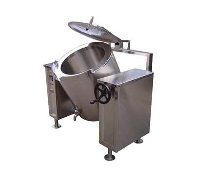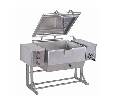 Tilting Boiling Pan used for grilling, browning, braising, frying, boiling, and stewing a variety of food items.